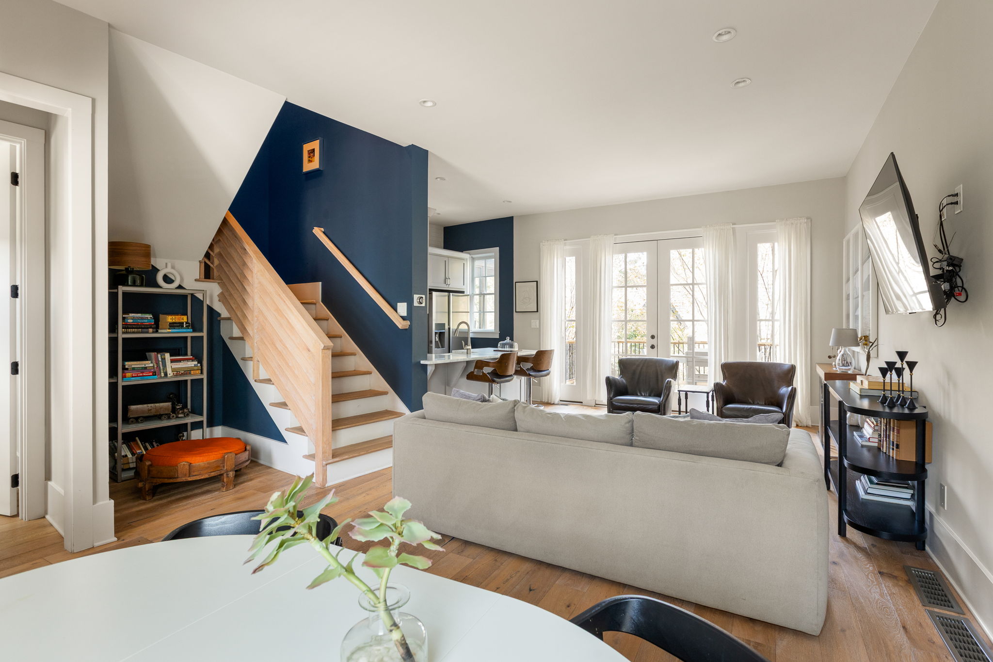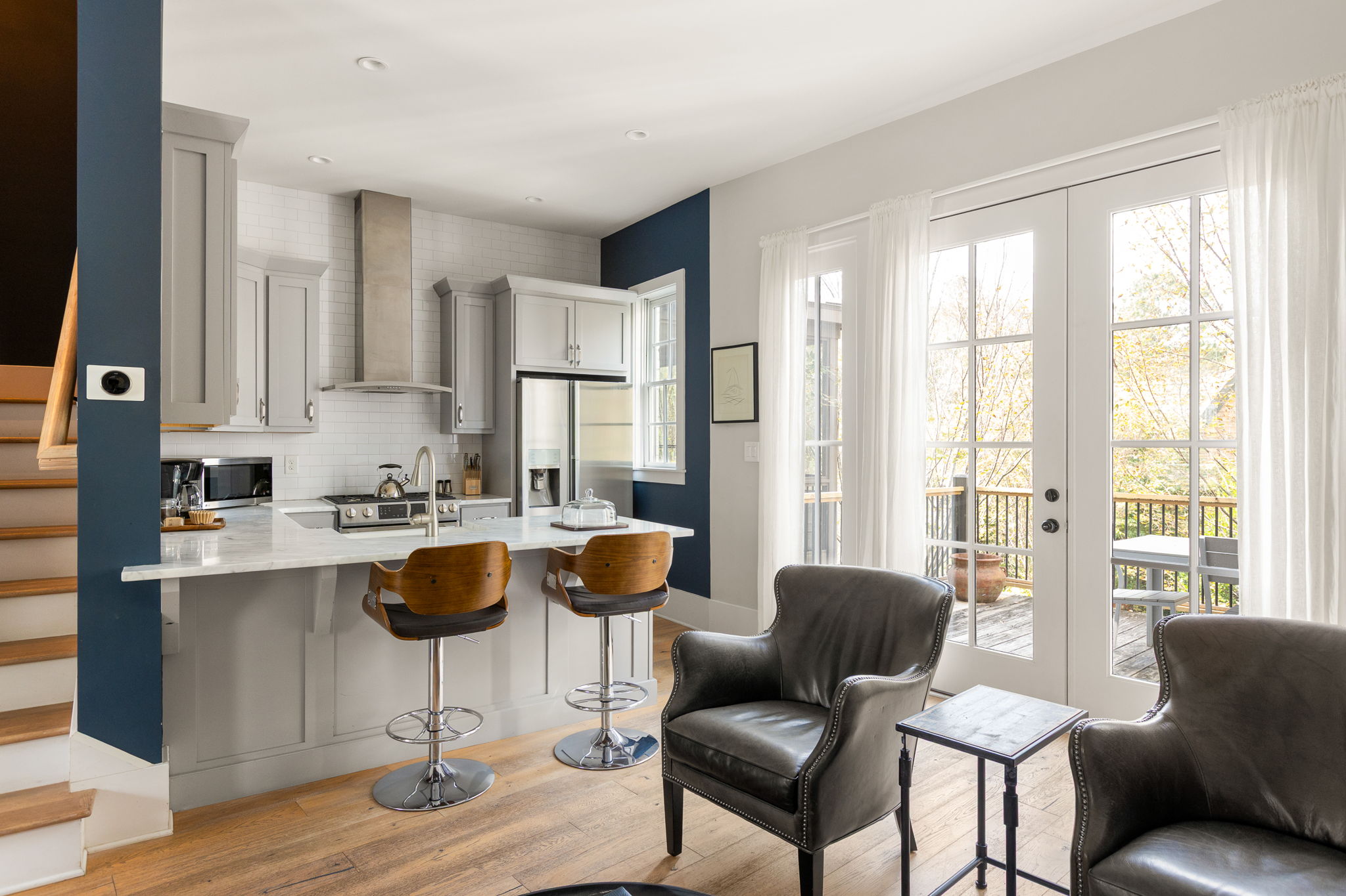 Nestled in the heart of Serenbe’s Grange Hamlet, this 3-bedroom, 3.5-bathroom townhome combines modern convenience with timeless charm. The open floor plan features a dining nook and spacious living area that seamlessly extends to a back porch overlooking the bocce ball courts and treetops. Upstairs, a versatile sitting room offers the ideal setting for a home library, office, or secondary lounge. The terrace level includes a private in-law suite with its own kitchen—perfect for hosting guests or creating an additional income stream.