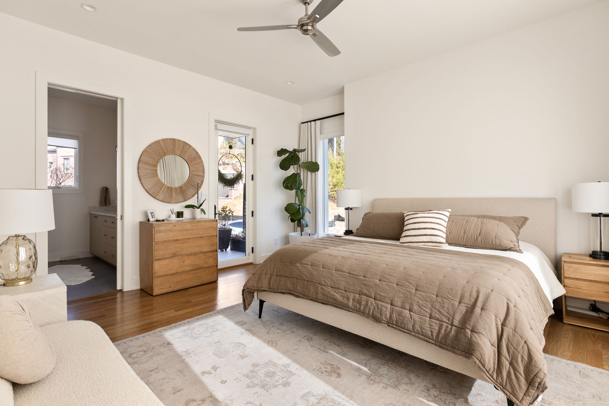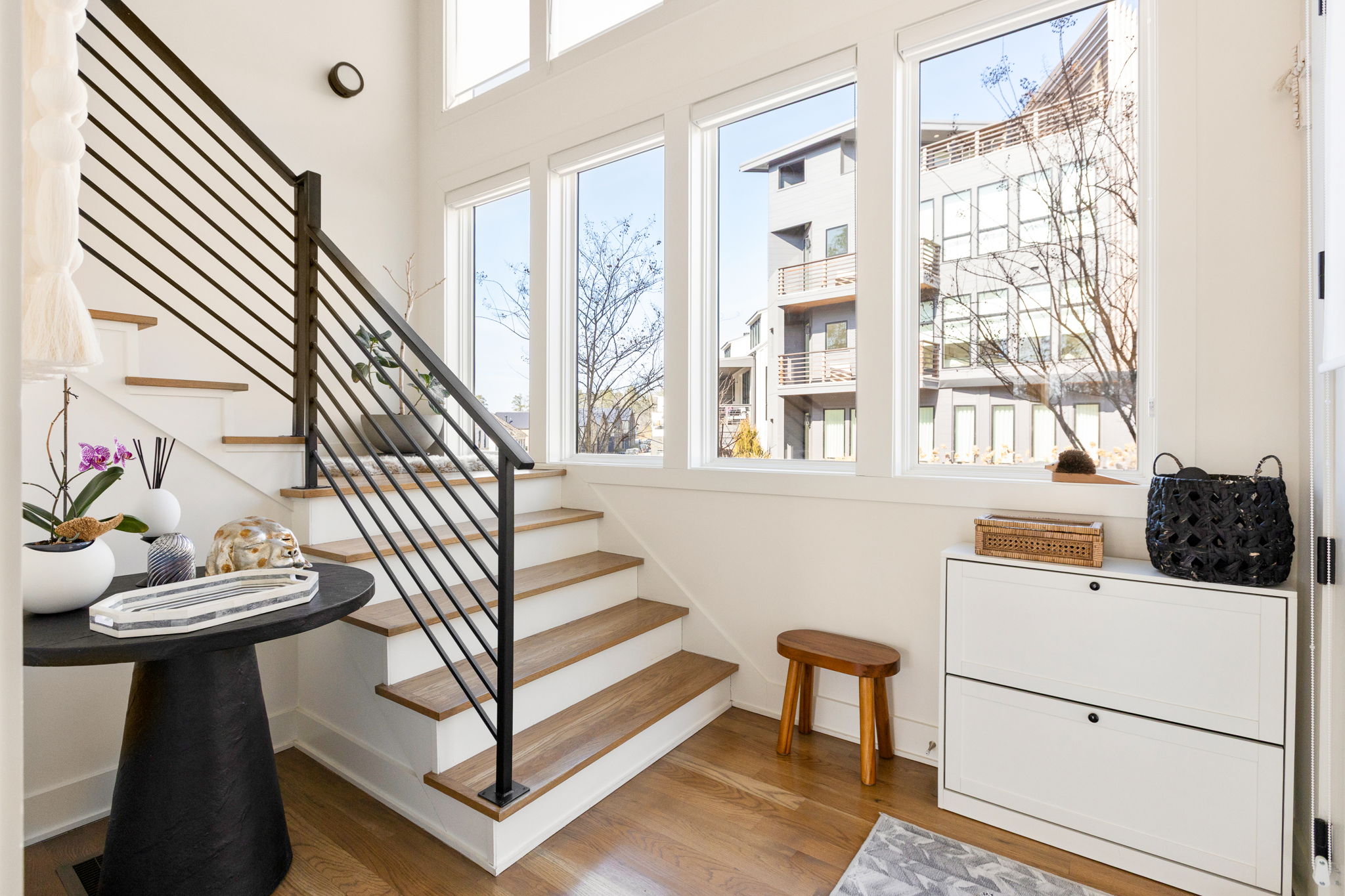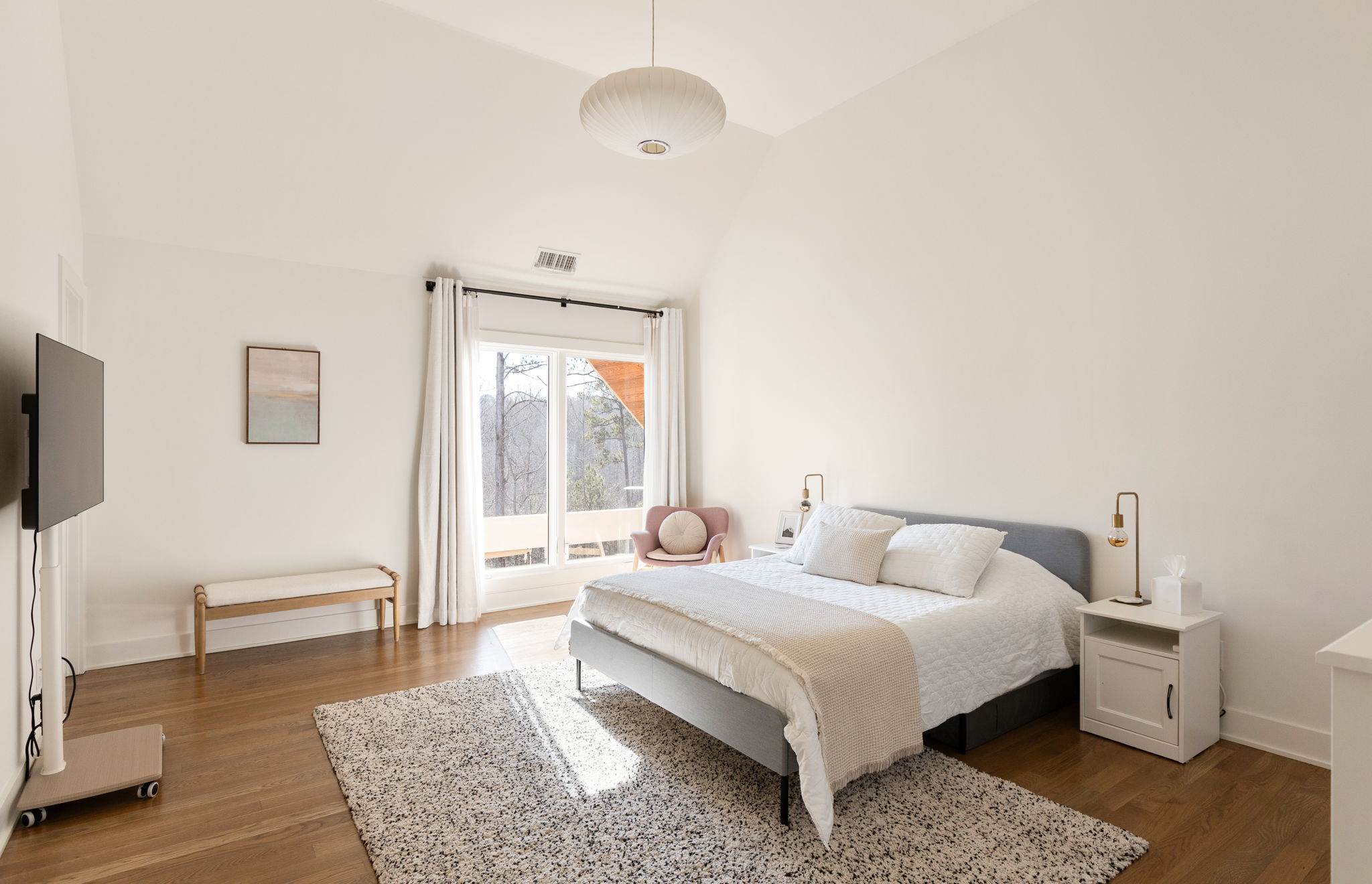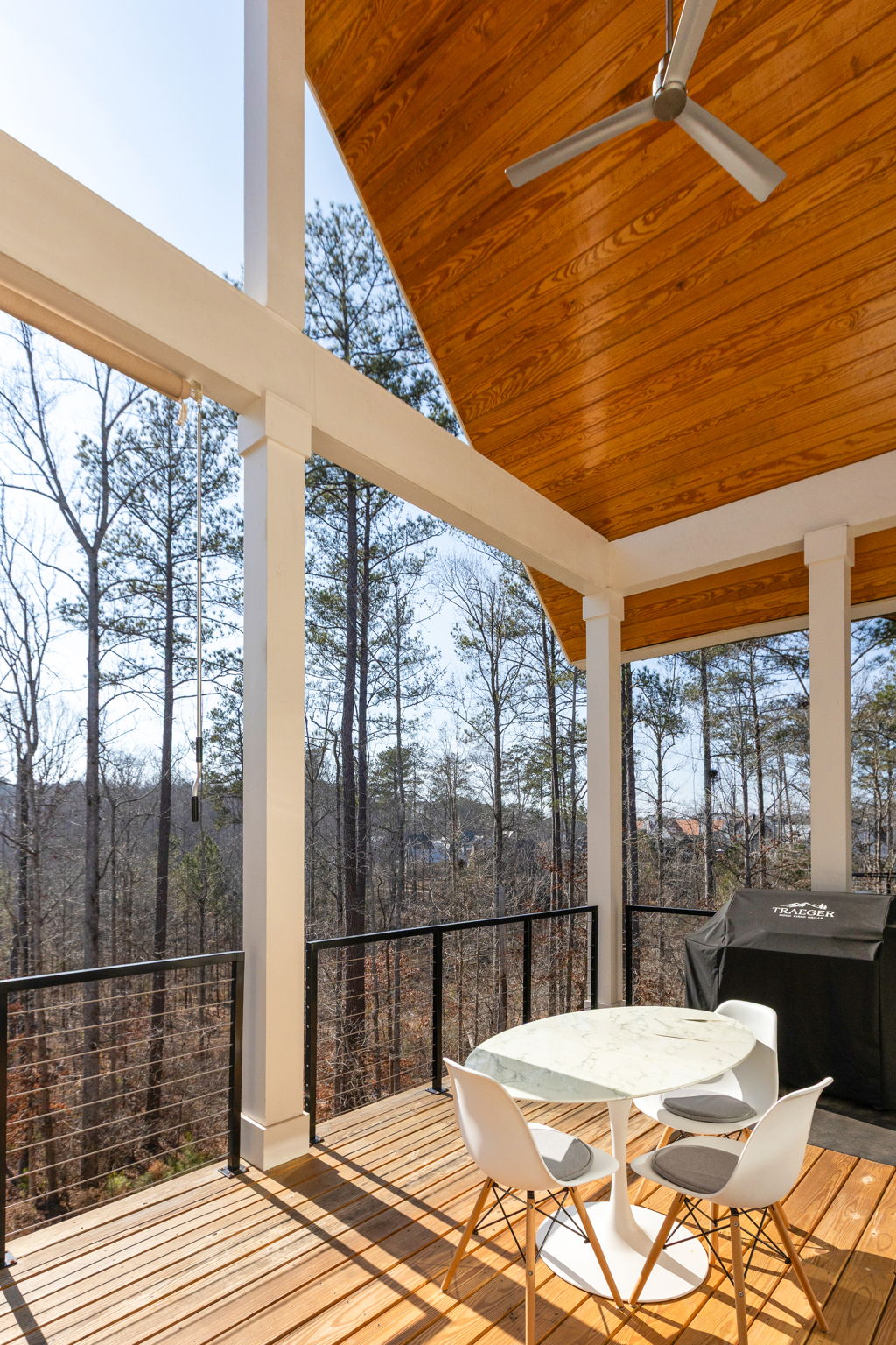 Nestled in the Mado Hamlet of Serenbe, this thoughtfully designed home offers four bedrooms and four and a half bathrooms with an open living and dining floor plan ideal for everyday living and entertaining. The primary suite is conveniently located on the main level, opening to an expansive vaulted back porch overlooking treetop views. Upstairs, two guest bedrooms are joined by a flexible playroom and a loft with access to a private outdoor balcony. The terrace level adds a finished bedroom and bath, plus a garage with additional storage, completing this inviting retreat surrounded by nature. This home is also equipped with solar power panelling on the roof, offering energy effeciency. Centrally located, the home is just steps from Serenbe’s wellness amenities, including the spa, gym, restaurants, cafés, and over 20 miles of soft-surfaced nature trails through protected forest views.