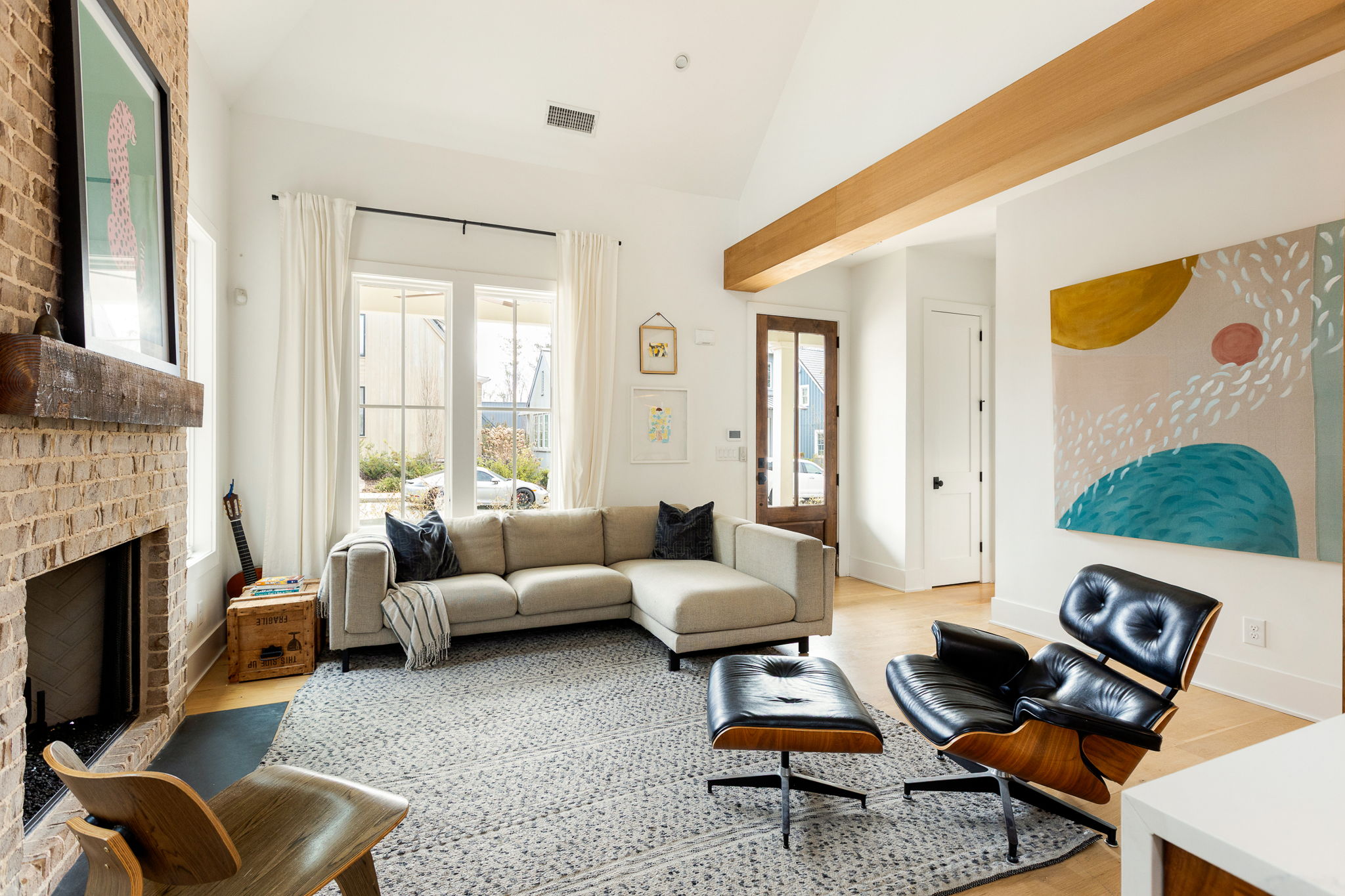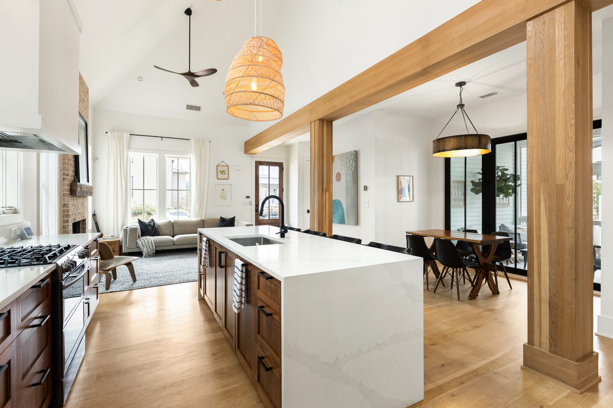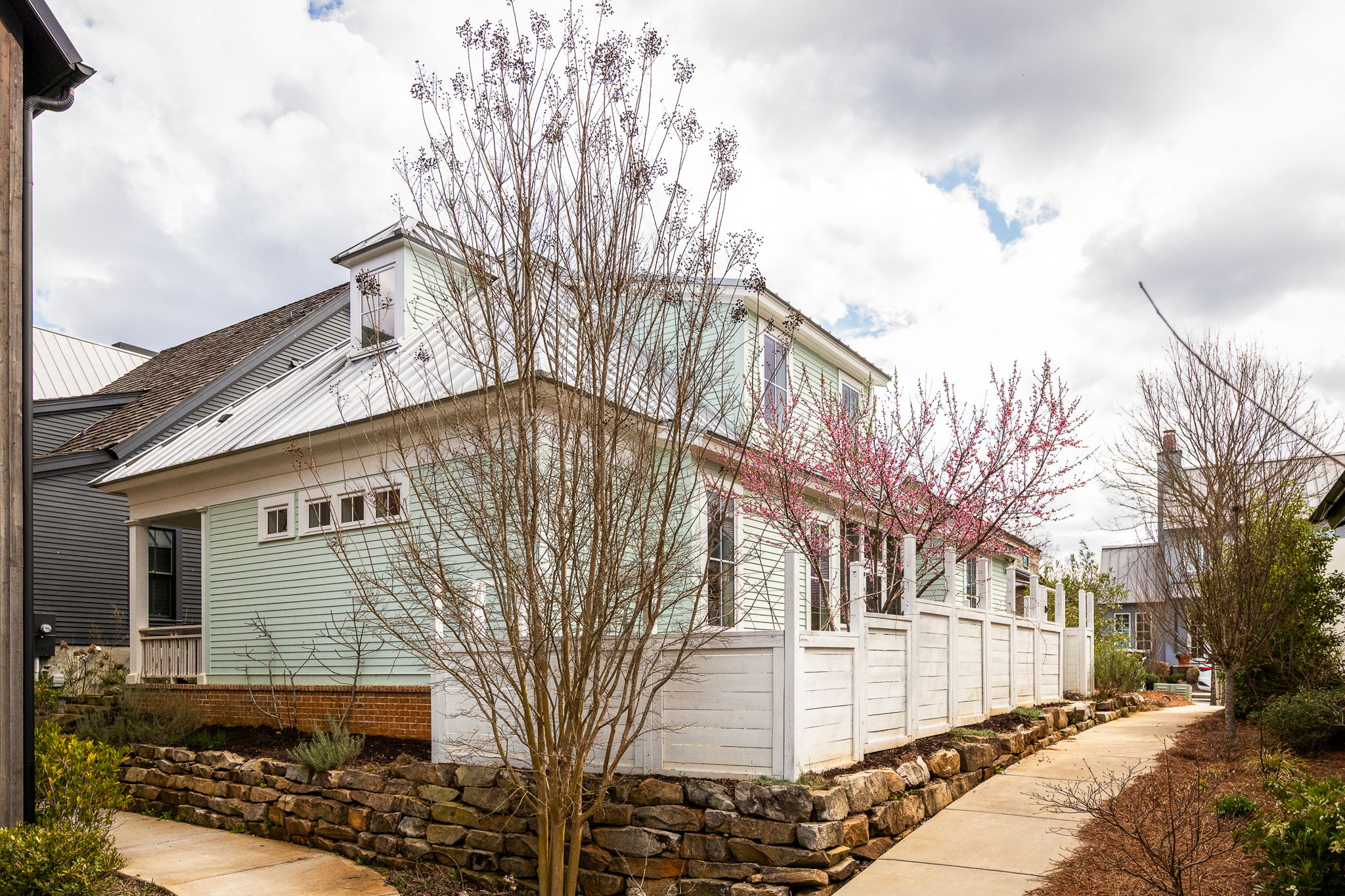 This charming cottage in the Mado Hamlet of Serenbe welcomes you with an inviting front porch that sets the tone for relaxed, comfortable living. Inside, an open concept layout seamlessly connects the living and dining areas, creating a bright and welcoming space for both everyday living and entertaining. The living room is anchored by a cozy fireplace, adding warmth and character to the heart of the home. The main level features a spacious primary suite along with a guest bedroom, offering convenience and flexibility for visitors or a home office. Just beyond the living space, a private fenced-in side yard creates a peaceful outdoor retreat, complete with a screened-in porch perfect for enjoying quiet mornings or evening gatherings. Upstairs, a lofted guest bedroom with its own bathroom provides a tucked away space ideal for guests seeking privacy. Thoughtfully designed and full of charm, this cottage blends comfortable living with inviting indoor and outdoor spaces all while being within close priximity to every wellness amenity that Serenbe has to offer.
