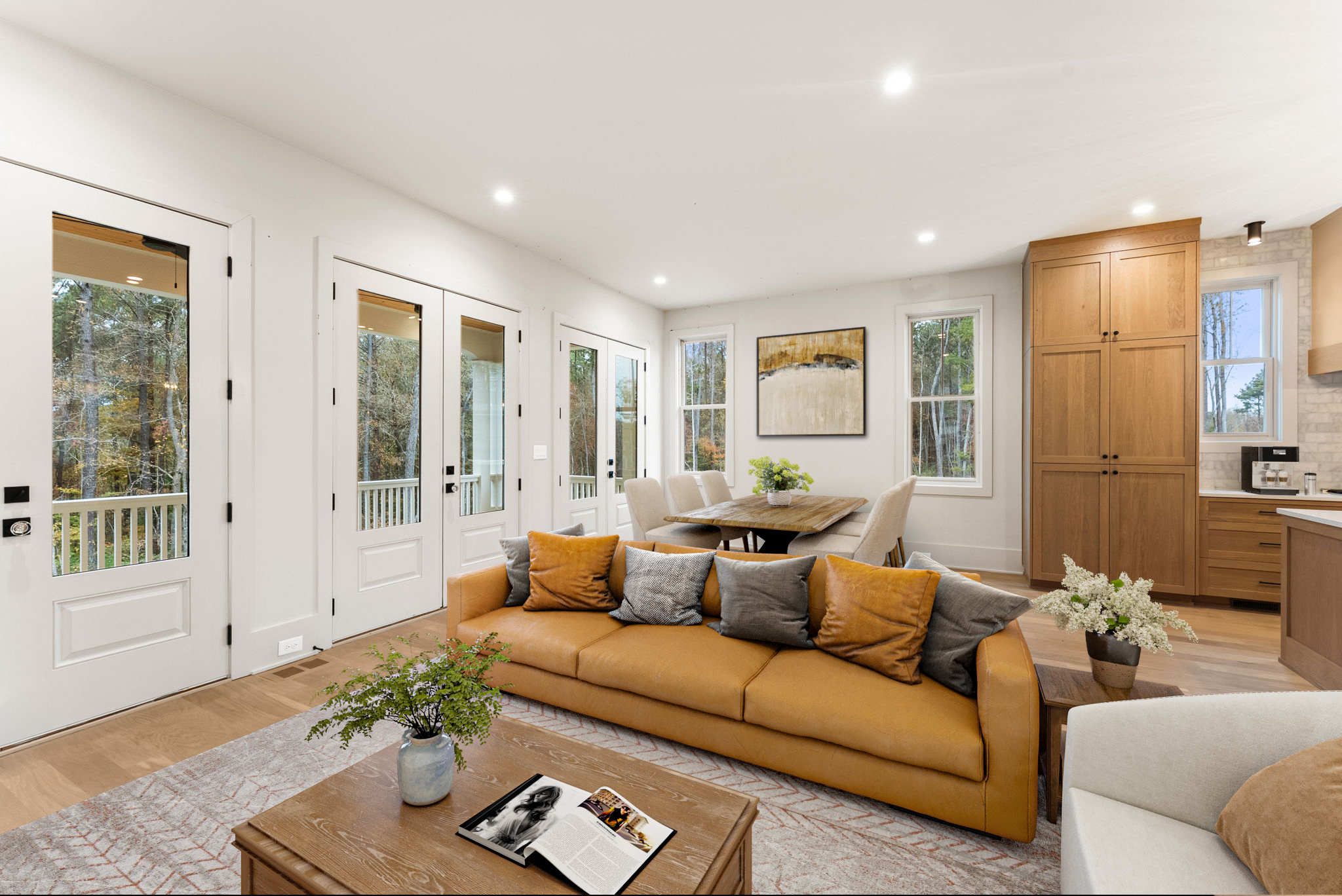 Nestled in the charming Spela Hamlet of Serenbe, this picturesque Victorian cottage blends timeless design with modern comfort. The main level boasts an open floor plan seamlessly connecting the living and dining areas, ideal for entertaining or cozy nights in. Enjoy serene mornings and relaxing evenings on both the inviting front porch and spacious back porch. A cozy den with a fireplace offers the perfect setting for a home library or private office. Upstairs, the primary bedroom is accompanied by two guest bedrooms, each with its own en-suite bathroom. The terrace level expands your living space with a versatile rec room—perfect for a secondary lounge or game room—and a fourth guest bedroom along with access to a private back patio for outdoor entertainment.
