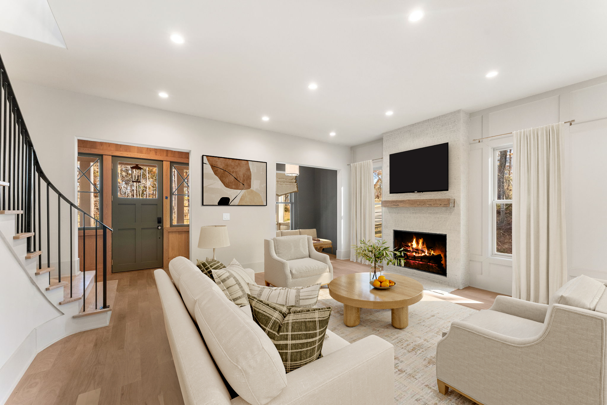 Located in the Spela Hamlet of Serenbe, this Victorian cottage offers charm and comfort in equal measure. The main level features an open floor plan with seamless flow between the living and dining areas, flanked by a welcoming front porch and a spacious back porch. Tucked away is a cozy reading nook—ideal for curling up with a good book. Upstairs, the primary bedroom is joined by two guest bedrooms, each with en-suite bathrooms for added privacy. The terrace level offers a spacious rec room for secondary living, plus a fourth guest bedroom. Come outside to a private back patio, perfect for entertaining guests year-round.