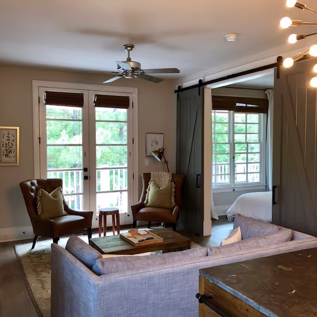 Come live in this chic carriage house in the Selborne hamlet of Serenbe. Selborne is the first hamlet to be built in Serenbe, so you are a short distance to the Hill restaurant, Blue Eyed Daisy Bakeshop, clothing boutiques, and immediate access to over 15 miles of nature trails. This one-bedroom carriage house boasts plenty of natural light and forest views with a balcony. The perfect space for any young professional or couple looking to live a simple life amongst nature.